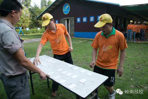 本次素质主要目的是力图增强团队凝聚力,加强团队合作,提高沟通能力。在短暂的“破冰”和急速反应的抓手指训练之后,全体教师分别组成两队,确定了各自分队的口号和造型,活跃了团队的气氛。